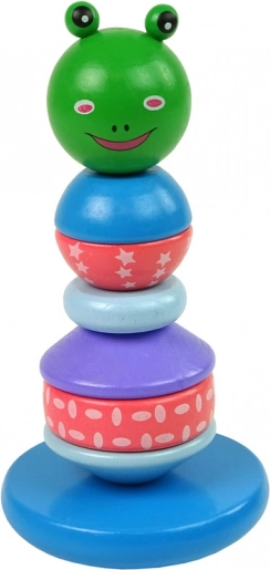 Houten educatieve piramide met kikker is een leuk en creatief speelgoed voor kinderen en ondersteunt de ontwikkeling van coördinatie en verbeelding.