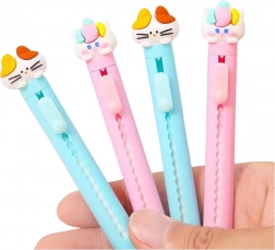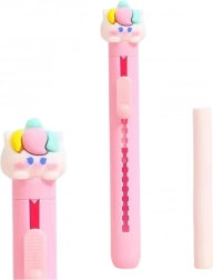De uitschuifbare gum met kattenfiguurtje biedt pasteltinten en een speels design dat niet alleen kinderen aanspreekt. Hij is zacht en papiervriendelijk, en verwijdert potlood effectief. Perfect voor school, thuis of creatieve activiteiten.