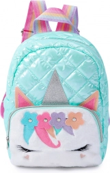 Het model is gemaakt van een duurzaam en toch licht materiaal, bestand tegen dagelijks gebruik. Aan de voorkant bevindt zich een zachte applicatie met een eenhoornmotief, inclusief uitstekende oortjes en hoorn, wat bijdraagt aan de uniciteit. De rugzak heeft een hoofdcompartiment met veel ruimte, één kleiner binnenvak en een extra buitenvak met ritssluiting.