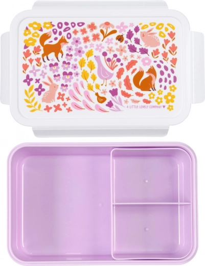 Deze praktische broodtrommel met dierenmotief in een bloementuin is ideaal voor kinderen op school of tijdens uitstapjes. Luchtdicht klikdeksel en een uitneembaar bakje met twee vakken zorgen ervoor dat de lunch altijd overzichtelijk is ingedeeld.