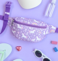Lichtpaars kinderheuptasje met eenhoorn- en regenboogmotief is een praktische accessoire voor uw kind. Met de verstelbare band kan het om de heup worden gedragen of als crossbody tasje.