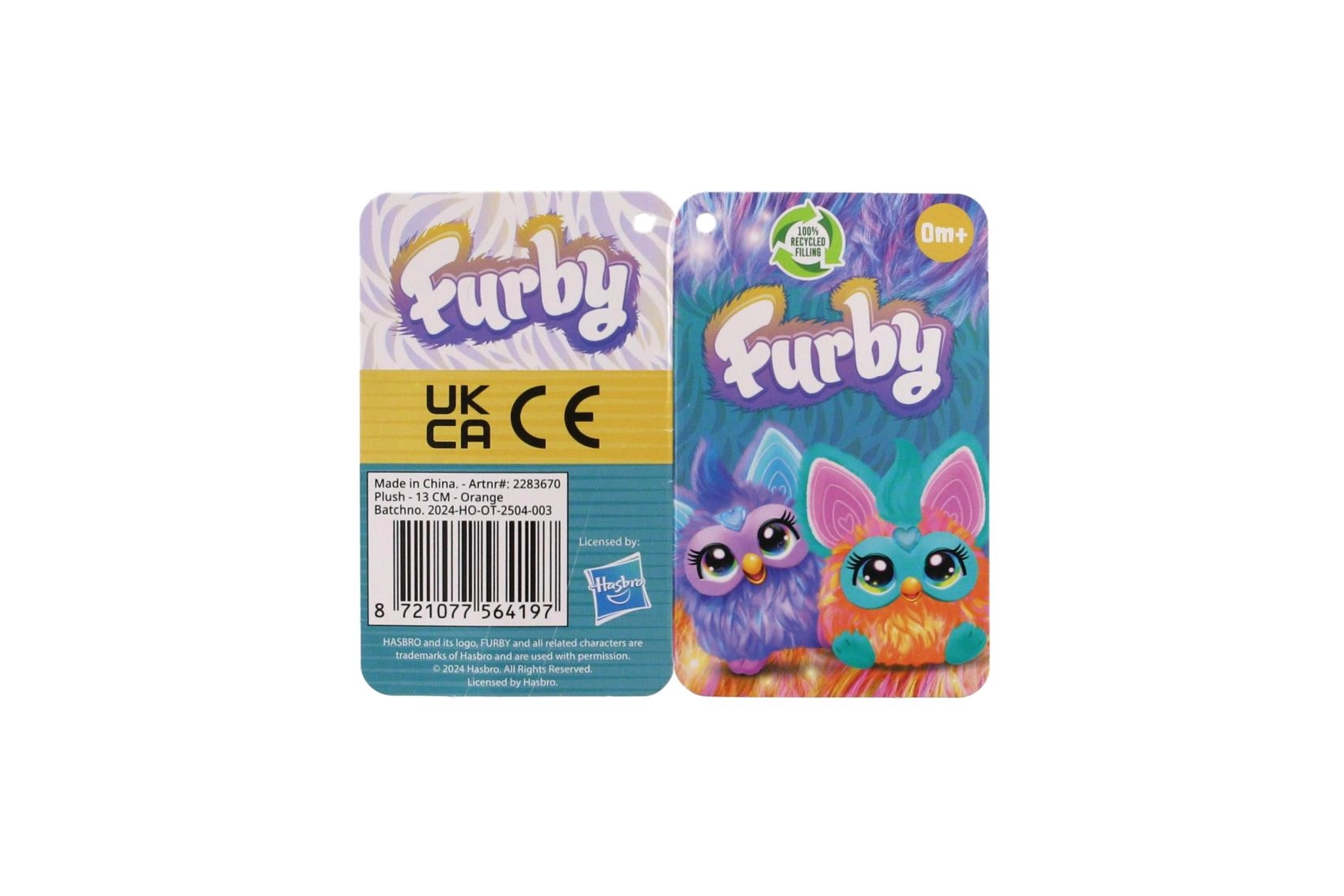Een schattige pluchen vriend Furby in oranje kleur maakt zowel baby’s als grotere kinderen blij. Hij is heerlijk zacht, knuffelig en dankzij het compacte formaat past hij perfect in het bedje, voor onderweg en voor dagelijks knuffelen. Geschikt vanaf de geboorte (0m+).