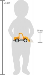 Deze houten lader is ontworpen voor kleine bouwers die ladingen willen tillen en verplaatsen in hun kinderkamer. Dankzij de beweegbare arm en de schep leren kinderen coördinatie en ontwikkelen zij hun fijne motoriek. De lader is gemakkelijk te besturen dankzij de gerubberde wielen en de veilige, afgeronde randen, die ideaal zijn voor kleine kinderhandjes.