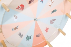 Ontdek een multifunctioneel spel dat plezier met leren combineert. Het slingerende rad is ideaal voor gebruik op feestjes, in kinderdagverblijven of thuis. Dankzij de draagbare constructie plaats je het gemakkelijk overal, bijvoorbeeld op een tafel.