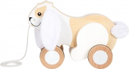 Het lieve konijntje van hoogwaardig, stevig hout betovert elk kind met zijn zachte, knisperende oortjes en staart. Het bevordert de motorische vaardigheden en moedigt kinderen aan om te kruipen en te lopen met het touwtje, dat gemakkelijk te trekken is. De gerubberde wieltjes zorgen voor een vloeiende en stille rit.