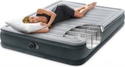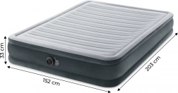 Zoek je een comfortabele en duurzame oplossing om te overnachten voor gasten of onderweg? Dit tweepersoons opblaasbed van INTEX biedt hoog slaapcomfort dankzij het zachte veloursoppervlak, de verhoogde hoogte en de gelijkmatige gewichtsverdeling. De geïntegreerde elektrische pomp zorgt voor snel opblazen en leeglaten binnen enkele minuten.