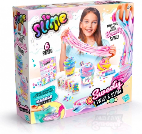 Ontdek een wereld vol creativiteit met de unieke set So Slime Marble Sweety Twist & Slime. Maak unieke, kleurrijke slijmen met behulp van verschillende kleurpoeders en leuke versieringen.