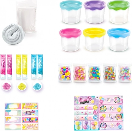 Met deze set komen alle creatieve vaardigheden van uw kinderen volledig tot bloei. Meng verschillende poederkleuren, voeg versieringen toe en zie hoe alles verandert in een speels en sprankelend slijm! Deze set bevat alles wat je nodig hebt voor urenlang plezier: