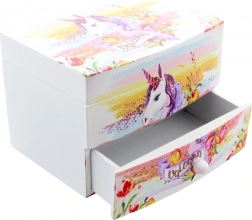 Houten sieradendoos met eenhoornmotief, niet alleen een stijlvol element voor de kinderkamer, maar ook een praktische opbergplaats voor kleine schatten. Het is een perfect cadeau voor kinderen dat met zijn charme zal verrukken.