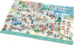 Duik in het fascinerende leven in de stad met dit schitterende grootformaatboek. Je volgt alles van de ochtenddrukte tot de avondlijke geheimen. Iedere pagina zit boordevol gedetailleerde kleurrijke afbeeldingen en grappige situaties die zowel kinderen als ouders zullen vermaken.