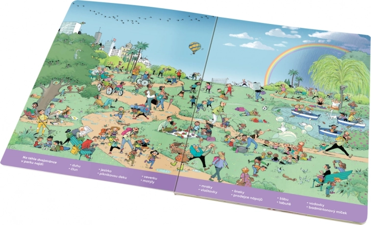 Maak kennis met het wisselvallige weer tijdens urenlang lezen en ontdekken. Het boek staat vol met gedetailleerde, kleurrijke illustraties die uitnodigen om nieuwe en grappige verhalen en personages te zoeken. Ontdek verhalen met een goed einde en onverwachte wendingen. Elke pagina biedt een nieuw avontuur dat je alleen vindt in dit prachtige, grootformaat kartonboek.