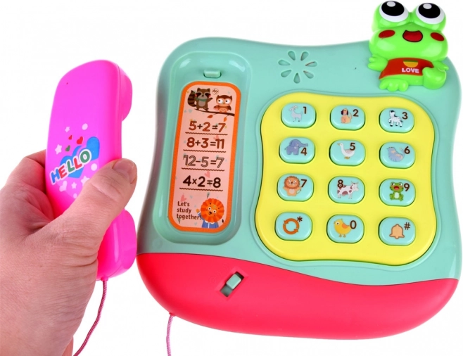 Bekijk deze kleurrijke muzikale telefoon voor kinderen, die veel plezier en educatieve functies biedt. Elke knop op de telefoon speelt niet alleen verschillende melodieën en geluiden af, maar is ook voorzien van afbeeldingen van dieren en cijfers in het Engels. Wanneer de hoorn wordt opgepakt, klinkt er een beltoon met een welkomstmelodie, terwijl bij het neerleggen het karakteristieke geluid van het ophangen te horen is.