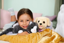 Kat Cookie is ontworpen om op een echte kat te lijken. Kinderen kunnen genieten van de zachte en aangename vacht, ideaal om mee te knuffelen. Het is uitgerust met sensoren die reageren op aanraking en authentieke geluiden en trillingen produceren, waardoor er een nieuwe dimensie aan het spel wordt toegevoegd.