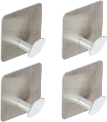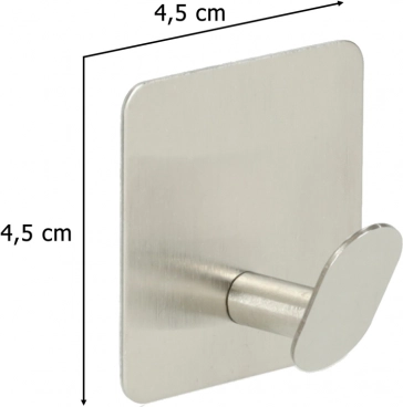 Praktische set van vier zelfklevende haken van roestvrij staal voor snelle organisatie zonder boren. Dankzij de sterke 3M-tape hechten ze betrouwbaar op tegels, glas en hout. Modern geborsteld oppervlak, eenvoudige installatie in 10 seconden en universeel gebruik in badkamer, keuken en hal. Elke haak draagt tot 1 kg en is bestendig tegen vocht en corrosie.