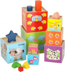 Houten toren met boerderijdieren - plezier en leren in één!
