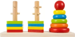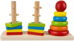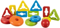Maak kennis met drie basisvormen: cirkel, driehoek en rechthoek. Het speelgoed bevat een basis en verschillende stukken die gemakkelijk kunnen worden gemanipuleerd en gestapeld.