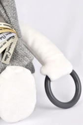 Het lichaam van het beertje is gemaakt van een fluweelzachte stof die aangenaam aanvoelt en is afgewerkt met subtiele Doudou-borduursels. Voor zintuiglijke stimulatie en de ontwikkeling van de fijne motoriek biedt het beertje tal van prikkels, zoals knisperfolie in de pootjes, een plastic grijpring en een rammelaar in het lijfje.