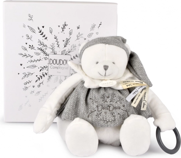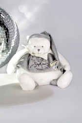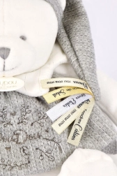 Doudou pluchen ijsbeer is het ideale speelgoed voor pasgeborenen. Dankzij het grijze mutsje, versierd met satijnen linten met liefdevolle Franse boodschappen, geeft het beertje een tedere touch aan elk knuffelmoment.