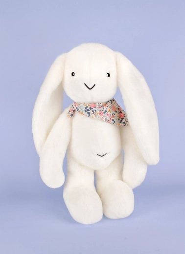 Een zacht en knuffelig konijn van 50 cm biedt kinderen vanaf de geboorte vriendschap en een gevoel van veiligheid. Uitgerust met een gebloemd sjaaltje brengt het bij elke knuffel vreugde.