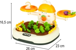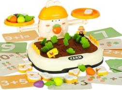 De set betrekt het kind in een spannend spel waarin het groenten plant en uittrekt en deze op de weegschaal plaatst. Dit plezier ontwikkelt geduld, reflexen en helpt kleine tegenslagen te overwinnen. Het bevordert optimaal de hand-oogcoördinatie en motorische vaardigheden.