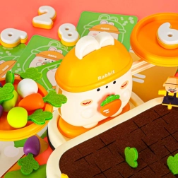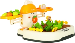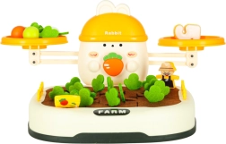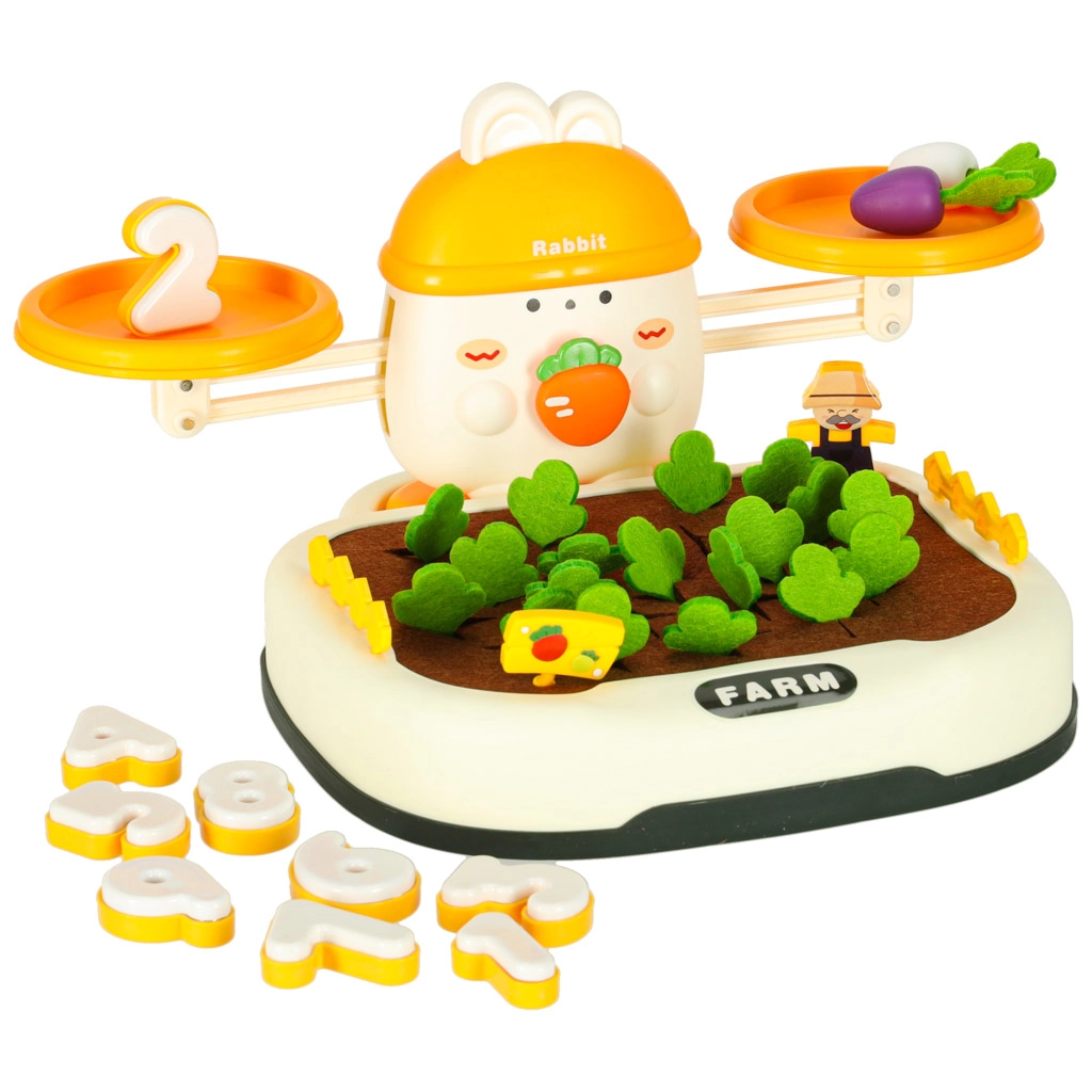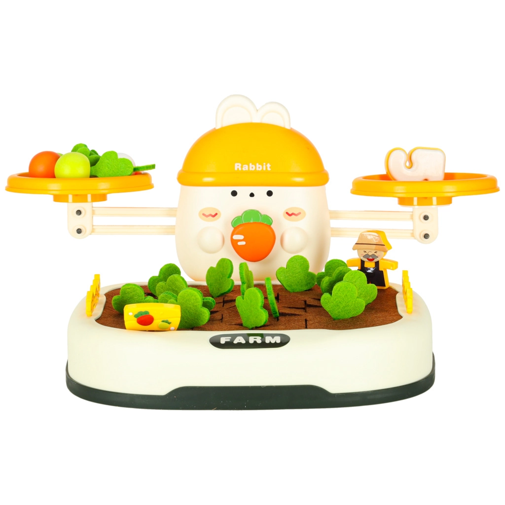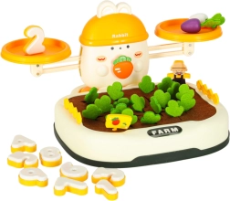 Het bovenste deel van de set wordt beheerd door een schattig konijntje – het bewaakt het evenwicht. Kinderen kunnen wortels en andere objecten stapelen om het evenwicht te behouden of het bewust te verstoren en zo de basis van natuurkunde te leren. Bevat ook speciale cijfers met bijbehorende gewichten, waarmee ze leren bij het vergelijken van gewicht en het inschatten van numerieke waarden.