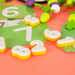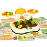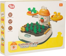 Een speciaal ontworpen bord met gaten laat kinderen de precisie van beweging oefenen – het plaatsen en uittrekken van wortels helpt de motorische vaardigheden te ontwikkelen en introduceert een element van gezonde competitie met het spel “wie oogst het snelst”.