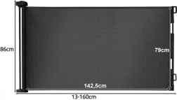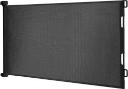 Het uitschuifbare hekje werkt als een flexibel rolgordijn van sterk gaas, dat zicht en luchtstroom toelaat en tegelijk een veilige barrière vormt. Dankzij de eenvoudige wandmontage en de haak aan de overzijde open en sluit je het met één hand, en opgerold neemt het nauwelijks ruimte in.