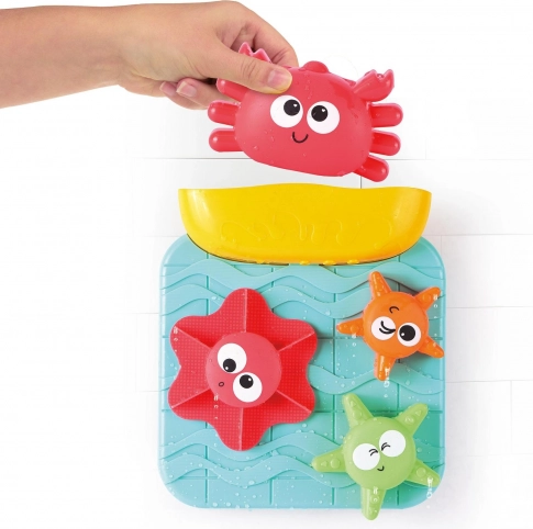 Ontdek de magie van water met het speelse waterrad voor in bad. Het zuignappensysteem houdt het paneel stevig op zijn plaats, zodat kinderen met het schepje water in het reservoir kunnen gieten en zien hoe de kleurrijke wieltjes en zeefiguren gaan draaien. Dankzij de heldere kleuren en vriendelijke motieven wordt badderen het leukste moment van de dag.