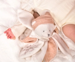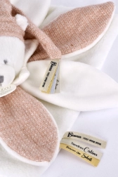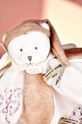 Satijnen linten met liefdevolle boodschappen in het Frans die de muts en het dekentje versieren, geven elke knuffel een nog zachtere uitstraling. Het speelgoed is verpakt in een luxe cadeauverpakking die van binnen verlicht is met ledlampjes.