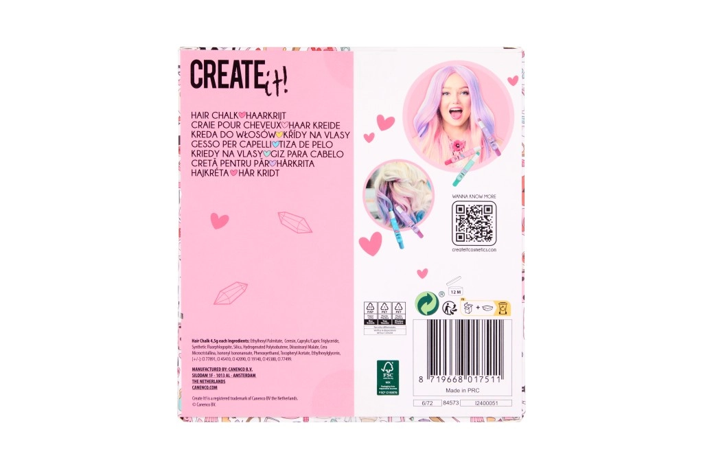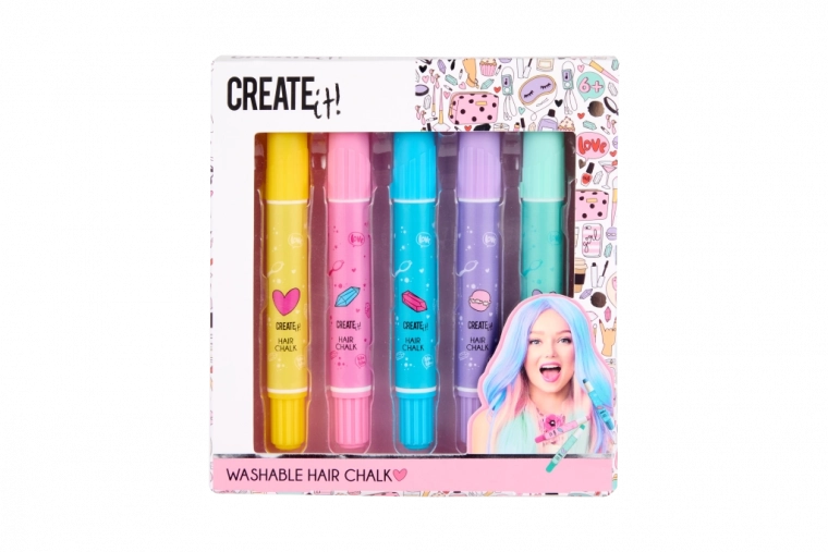 Het haarkrijt in potloodvorm van Creat it! laat je eenvoudig en snel je haarkleur naar wens veranderen. Ideaal voor speciale gelegenheden of voor dagelijks stylen. Het gebruik is makkelijk en de kleuren zijn geschikt voor alle haartypes: