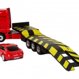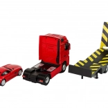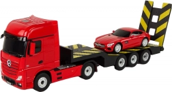 Dit geweldige model van een dieplader met een rood Mercedes‑Benz autootje is het ideale cadeau voor kleine liefhebbers van transport. Wat meteen opvalt zijn de donkere ramen en de perfect uitgewerkte details die de authenticiteit vergroten. De grote rubberen wielen zorgen voor stabiliteit tijdens het vervoeren van andere voertuigen.