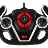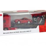 Het voertuig heeft afmetingen van 64 cm x 16 cm x 10 cm, waardoor het geschikt is voor het vervoeren van andere speeltjes. Het rode Mercedes‑autootje, onderdeel van de set, is volledig te bedienen met de afstandsbediening en heeft afmetingen van 18 cm x 5 cm x 8 cm, ideaal voor kinderhanden. Alle onderdelen, inclusief de controller met afmetingen 13 cm x 6 cm x 10 cm, zijn gemaakt van duurzaam plastic, wat langdurig speelplezier garandeert.