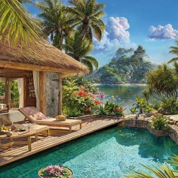 Geniet van uren puzzelplezier met de Cherry Pazzi-puzzel Vakantie in de tropen met 2000 stukjes, die een prachtig tropisch motief biedt op een formaat van 100 x 70 cm.