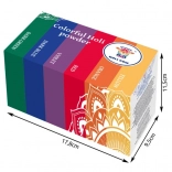 In de verpakking vind je zes opvallende tinten: wit, oranje, geel, groen, blauw en paars. De set is een uitstekende keuze voor het Holi-festival, themafeesten, teambuildings en promotie-evenementen. Het poeder is wasbaar en laat zich gemakkelijk verwijderen uit de meeste textielsoorten.
