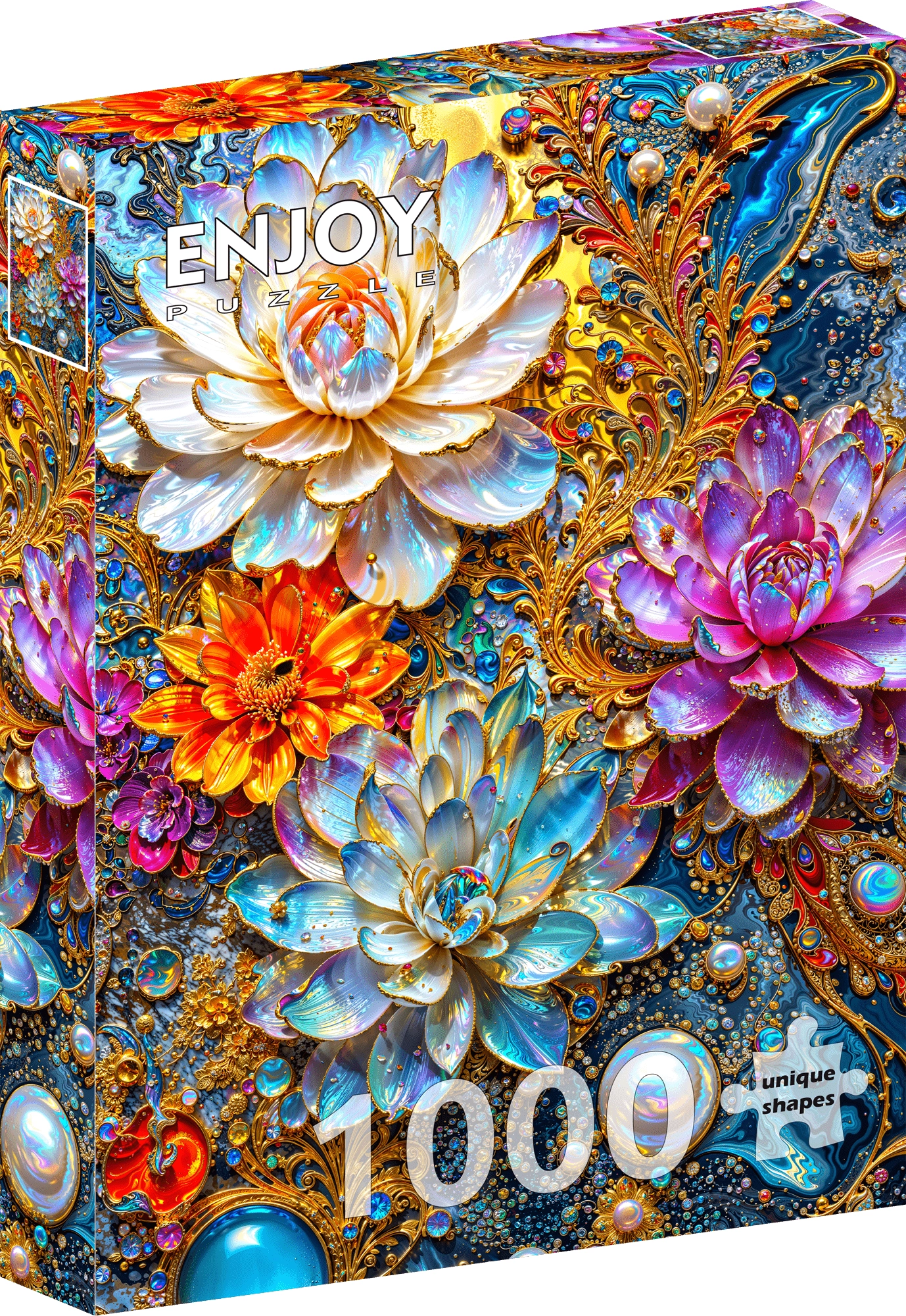 Geweldige puzzel met een motief van parelmoeren waterlelies. De puzzel met 1000 stukjes zorgt voor plezier voor het hele gezin en brengt de magie van de natuur rechtstreeks in uw huis.