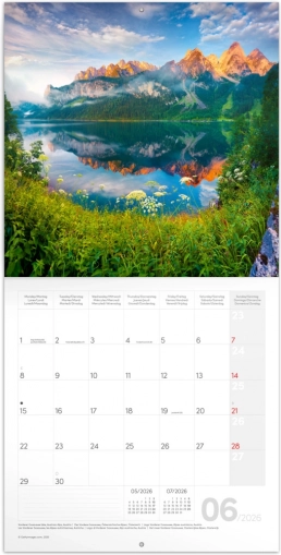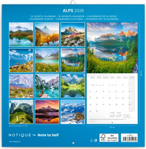 De kalender bevat 12 hoogwaardige foto’s die de schoonheid van de Alpen tonen en een rustgevende en inspirerende sfeer in uw huis of kantoor brengen.