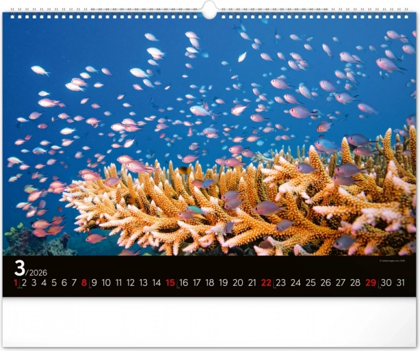 Ontdek de onderwaterwereld met de wandkalender 2026 met prachtige natuurfoto’s.