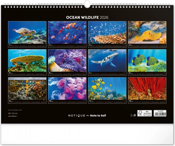 Ontdek de schoonheid van de onderwaterwereld met onze wandkalender 2026. Elke maand toont adembenemende zeescènes met details die elke ruimte tot leven brengen.