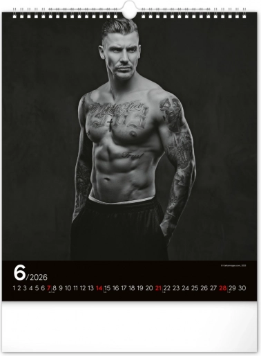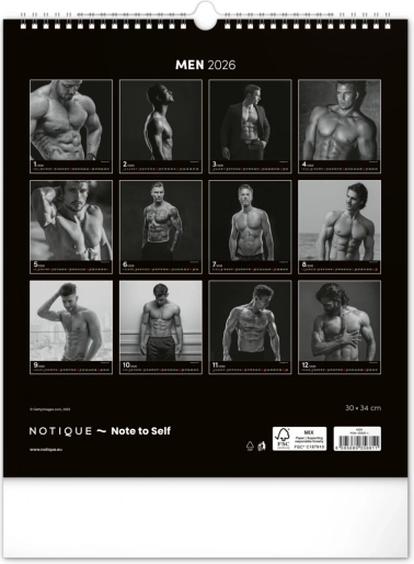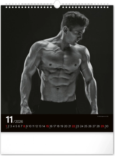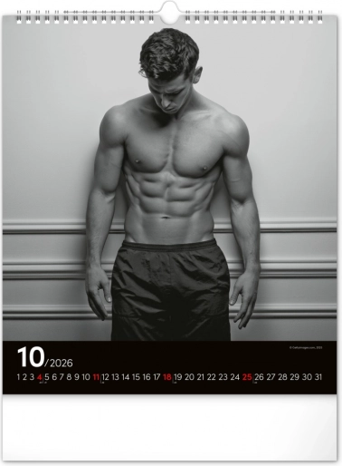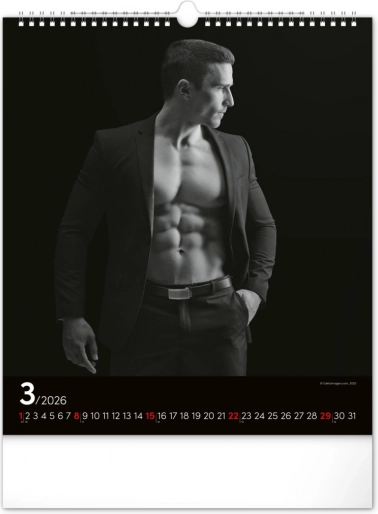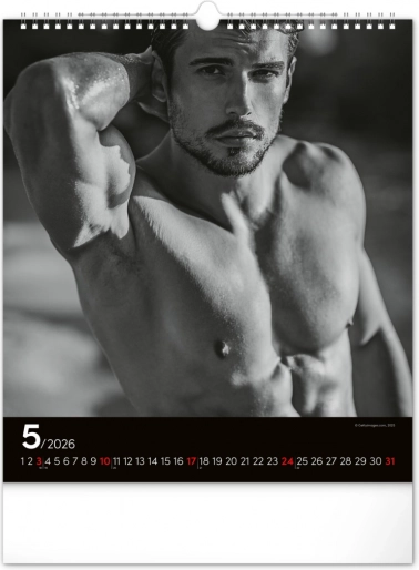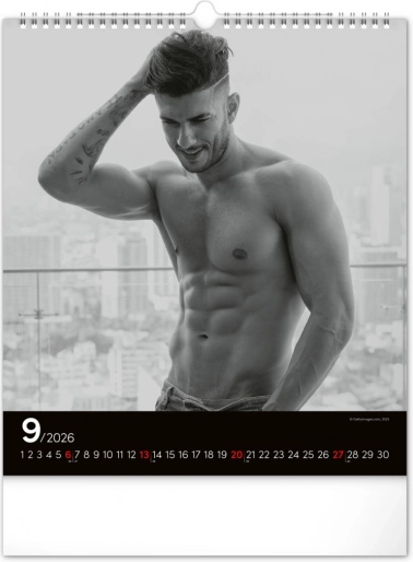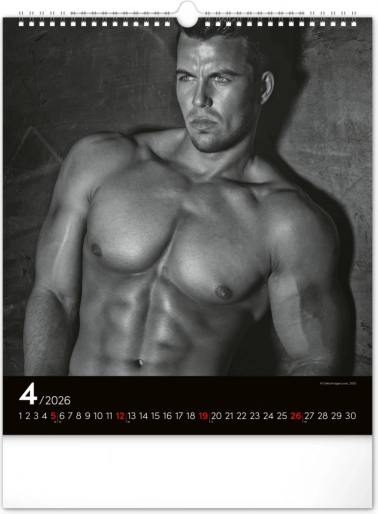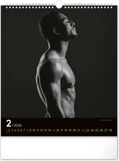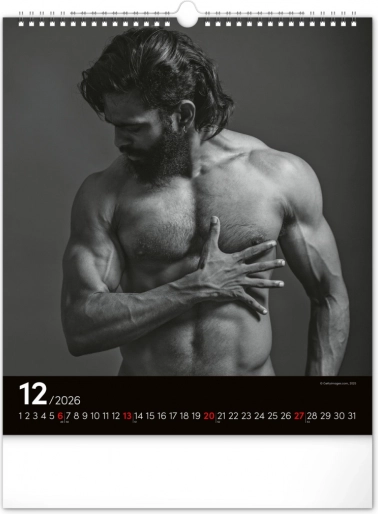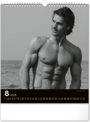 Deze wandkalender zal je betoveren met zwart-witfoto's die de schoonheid en kracht van aantrekkelijke mannen in hun volle glorie vastleggen. Elegant ontwerp met een eenvoudige kalender op een zwarte achtergrond geeft je ruimte een vleugje stijl.