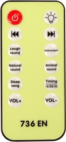 De bediening gebeurt via een afstandsbediening, waarmee je de verlichting, het volume en de geluiden regelt. Functies omvatten: