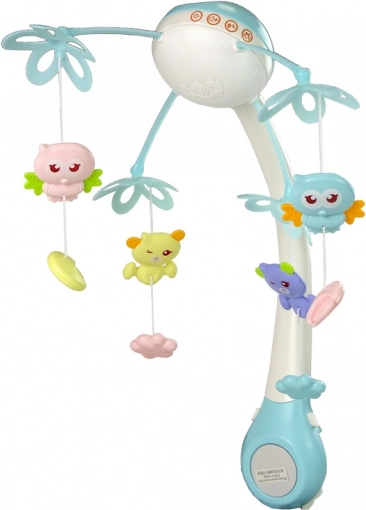 De mobiel is uitgerust met gekleurde sterretjes en hangspeeltjes in de vorm van vogeltjes en beertjes, die je baby stimuleren om de armpjes uit te strekken en naar de hangende objecten te grijpen. Zo worden de zintuigen ontwikkeld en de spieren versterkt. De zijkanten zijn gemaakt van zacht, niet-giftig rubber en kunnen als bijtspeeltje worden gebruikt.