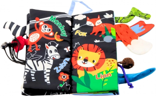Knisperende pagina’s en uitstulpende dierstaarten met verschillende texturen en kleuren stimuleren de zintuigen van het kind, bevorderen nieuwsgierigheid en fijne motoriek. Kleurrijke illustraties van dieren, zoals een zebra of giraffe, moedigen leren en spelen aan. Het boekje is licht en gemakkelijk mee te nemen, ideaal voor op reis of tijdens wandelingen.