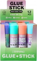 De lijmstift is verpakt in een mix van pastelkleurige varianten. Wordt per stuk verkocht of in bulkverpakking met 12 stuks.