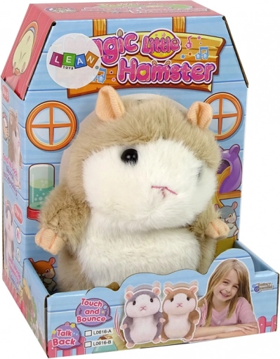 Deze vrolijke en levendige pratende hamster zal uw kinderen zeker betoveren. Hij kan helpen bij het leren van de eerste woordjes, de tafels of gewoon voor vermaak zorgen. Het is een geweldige manier om verplichtingen om te toveren tot plezier. De hamster herhaalt de woorden die hij hoort dankzij een speciaal opnamesysteem. Hij heeft een prettige stem en uitstraling, waardoor hij een favoriet is onder het speelgoed. Naast het herhalen van woorden beweegt hij op en neer tijdens het dansen. Het speelgoed is pluche, zacht en ideaal om mee te knuffelen.