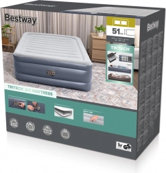 De opblaasbare matras Bestway is de ideale keuze voor wie op zoek is naar een snelle en comfortabele oplossing voor overnachtingen thuis of in de natuur. Dankzij het drielaagse TRITECH™ materiaal is de matras bestand tegen vervormingen en zorgt het voor langdurige duurzaamheid. De I-beam technologie biedt maximale stabiliteit en ondersteuning.