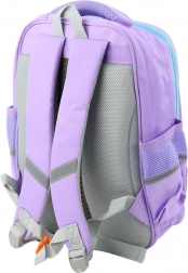 Paarse schoolrugzak met kleurrijke patches in de vorm van een slot, eenhoorn en hart. Combineert functionaliteit met een sprookjesachtige stijl, ideaal voor elke kleine studente. Gemaakt van duurzaam materiaal voor dagelijks gebruik.