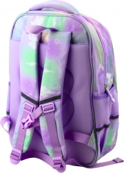 De schoolrugzak in pastelblauwe, paarse en roze tinten is een ideale keuze voor kinderen die functionaliteit met een stijlvolle look willen combineren. De rugzak biedt twee ruime vakken, waarvan het hoofdvak een praktische scheidingswand heeft voor het eenvoudig organiseren van boeken en schriften.