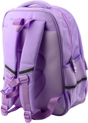 Onze paarse schoolrugzak biedt twee ruime hoofdvakken. Het hoofdvak is uitgerust met een intern compartiment voor eenvoudige organisatie van boeken en schoolspullen. Aan de voorkant bevinden zich nog twee extra vakken en aan de zijkanten elastische vakken voor een fles.