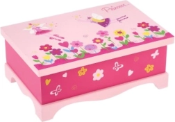 Schattige houten sieradendoos Princess van het merk TEDDIES maakt elke kleine dame blij. Biedt 5 vakken, een intern spiegeltje en een charmante bloemenversiering. Ideaal voor het opbergen van ringen, armbanden en kleine schatten.