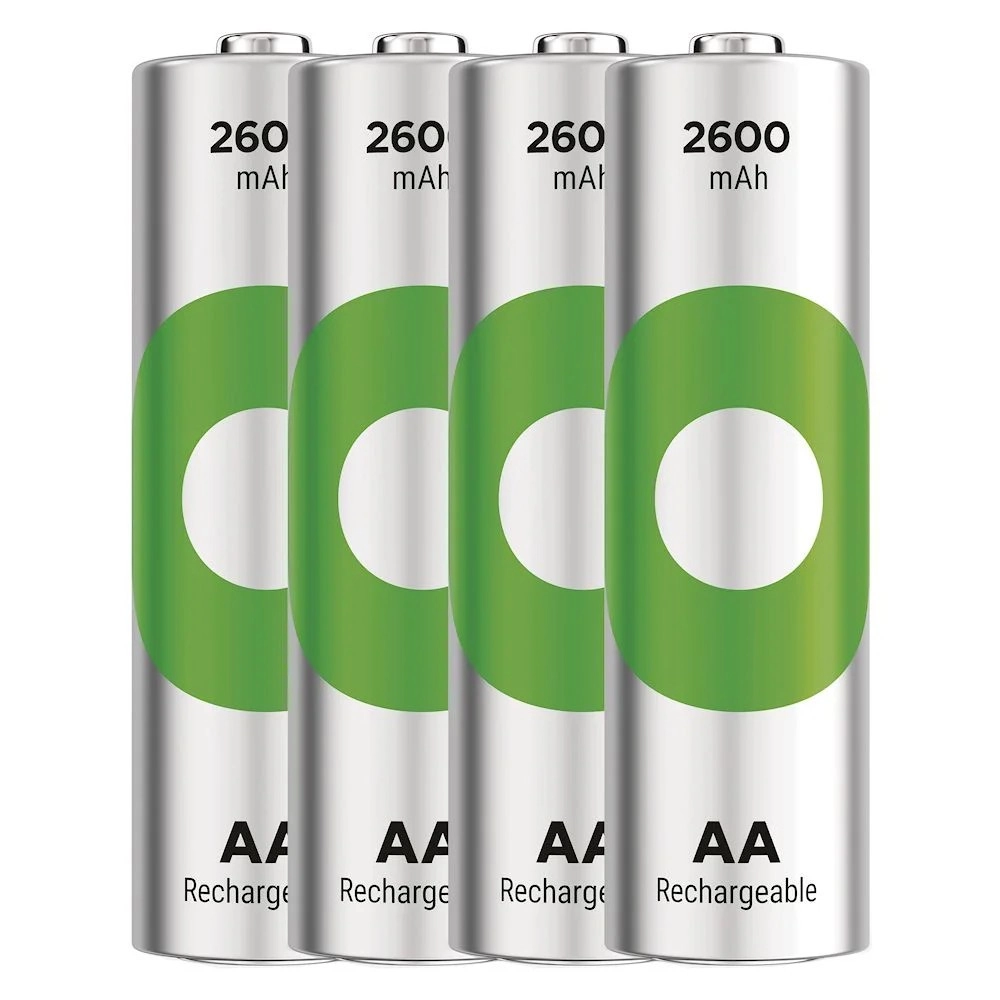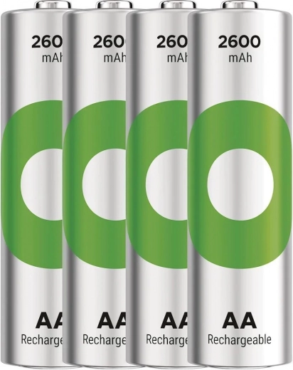Set van vier accu’s GP ReCyko biedt een hoge capaciteit van 2600mAh en een levensduur tot 300 laadcycli, wat overeenkomt met meer dan 4800 wegwerpbatterijen. Vooraf opgeladen en klaar voor gebruik, behoudt 70% van de energie na 6 maanden na het opladen. Een bedrijfstemperatuur van -20 °C tot +50 °C zorgt voor betrouwbare werking onder extreme omstandigheden.